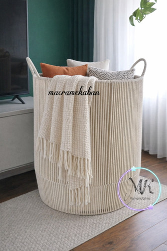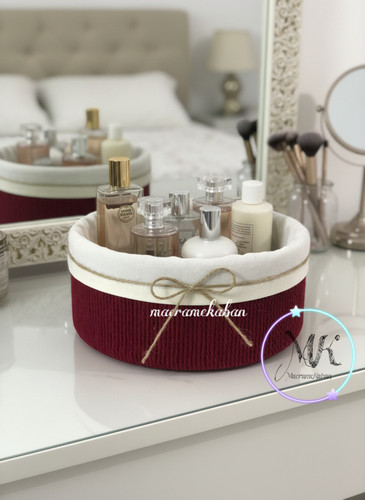 سبد جا لوسیون و جا عطر مکرومه‌ای دست‌بافت قطر ۳۰ ارتفاع ۱۰ سانت