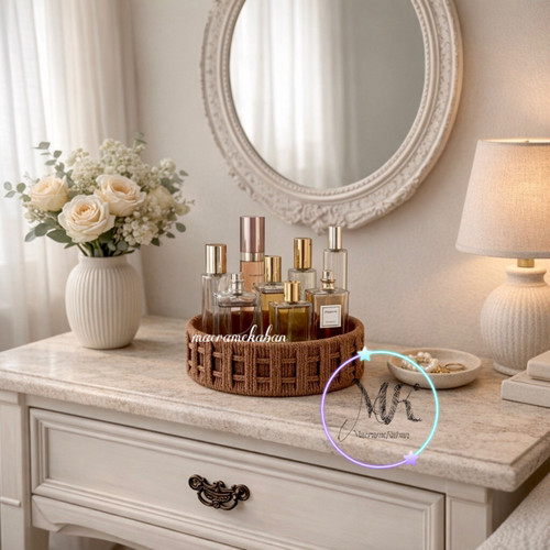 سبد جا لوسیون و جا عطر مکرومه‌ای دست‌بافت | نظم‌دهنده دکوری شیک