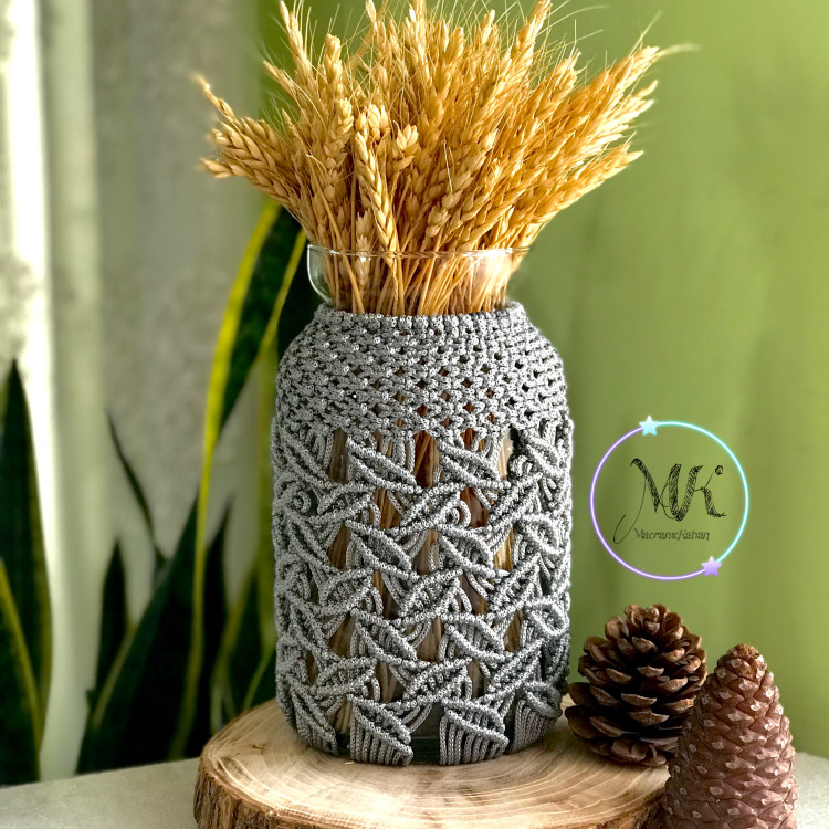 گلدان شیشه ای مکرومه مدل نسترن طرح رویش