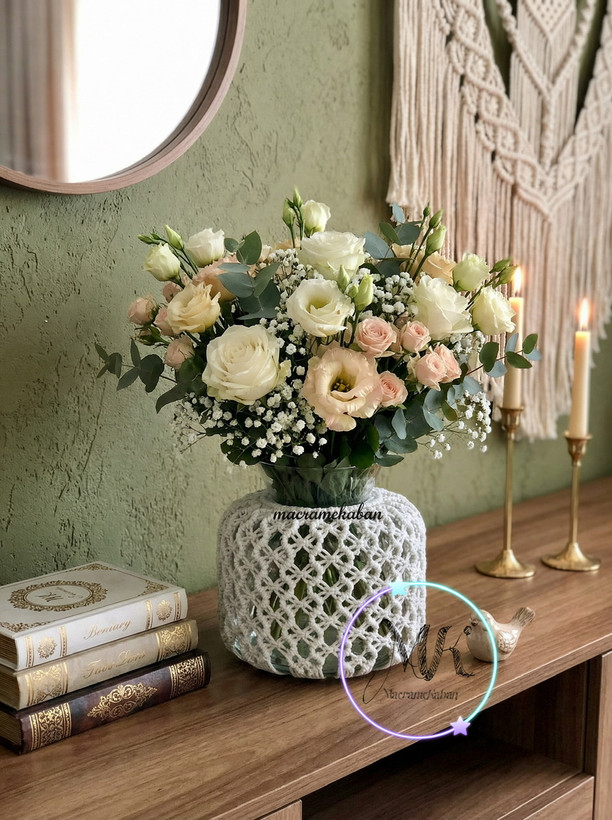 گلدان شیشهای مکرومه دستباف، انتخابی زیبا و کاربردی