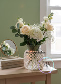 گلدان مکرومه شیشه ای مدل نسترن طرح لونه زنبوری