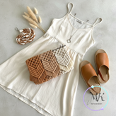 کیف مکرومه دستباف زنانه با استفاده از نخ پنبهای باکیفیت و بهصورت کاملاً دستی بافته شده است. این کیف با طراحی ساده و هنری، انتخابی مناسب برای استایل روزمره، تابستانی و بوهو محسوب میشود.