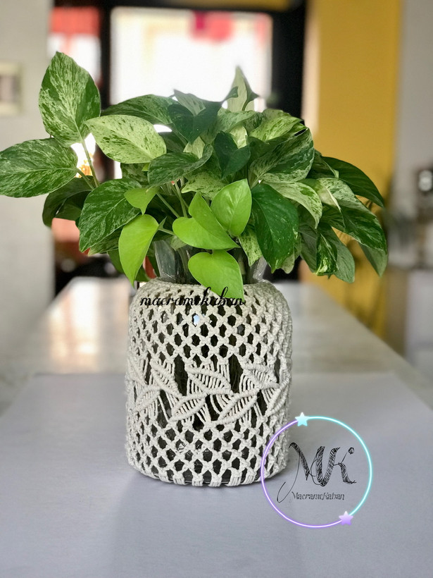گلدان شیشه ای مکرومه طرح رویش