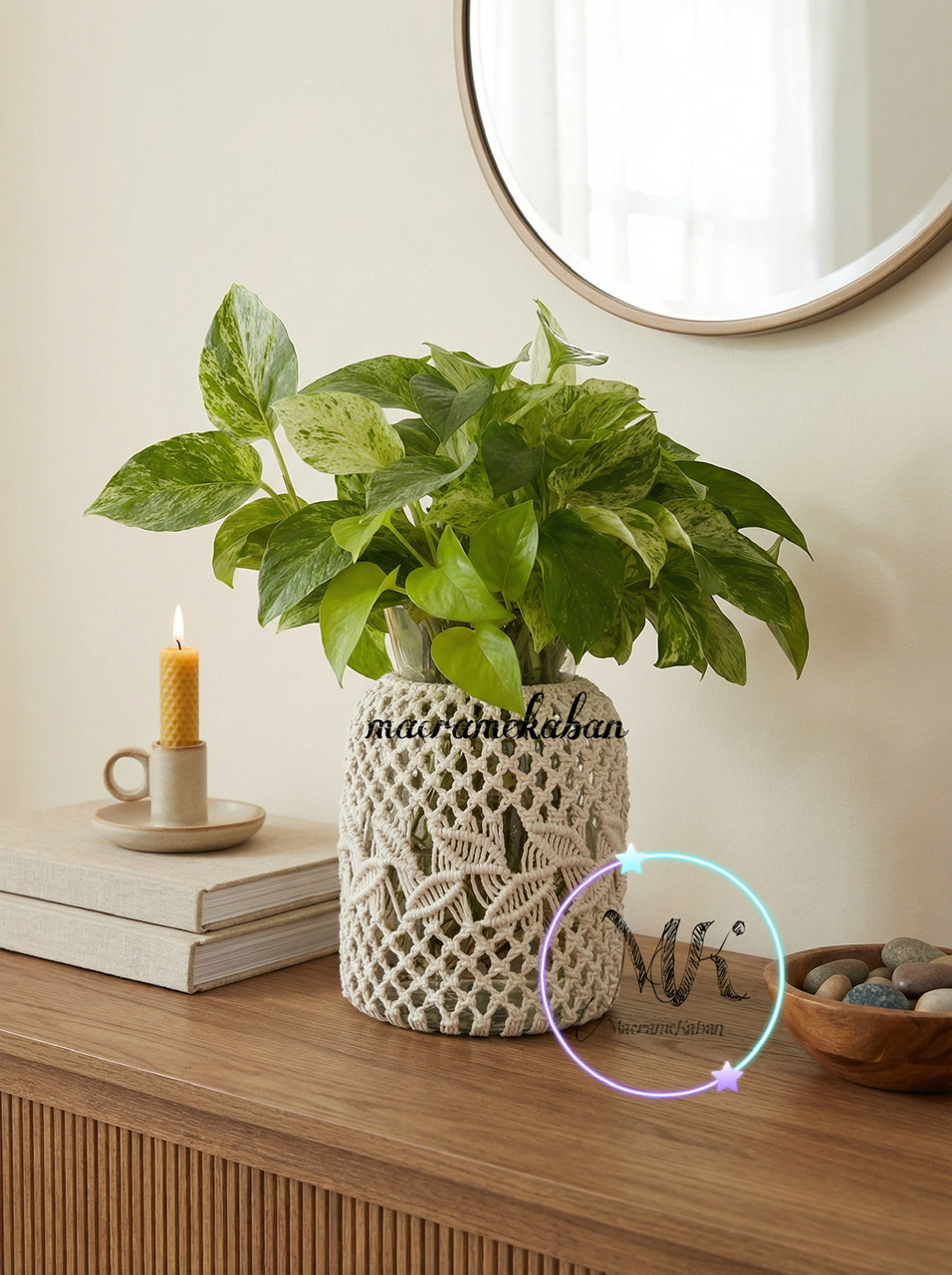 گلدان شیشهای مکرومه دستباف، انتخابی زیبا و کاربردی